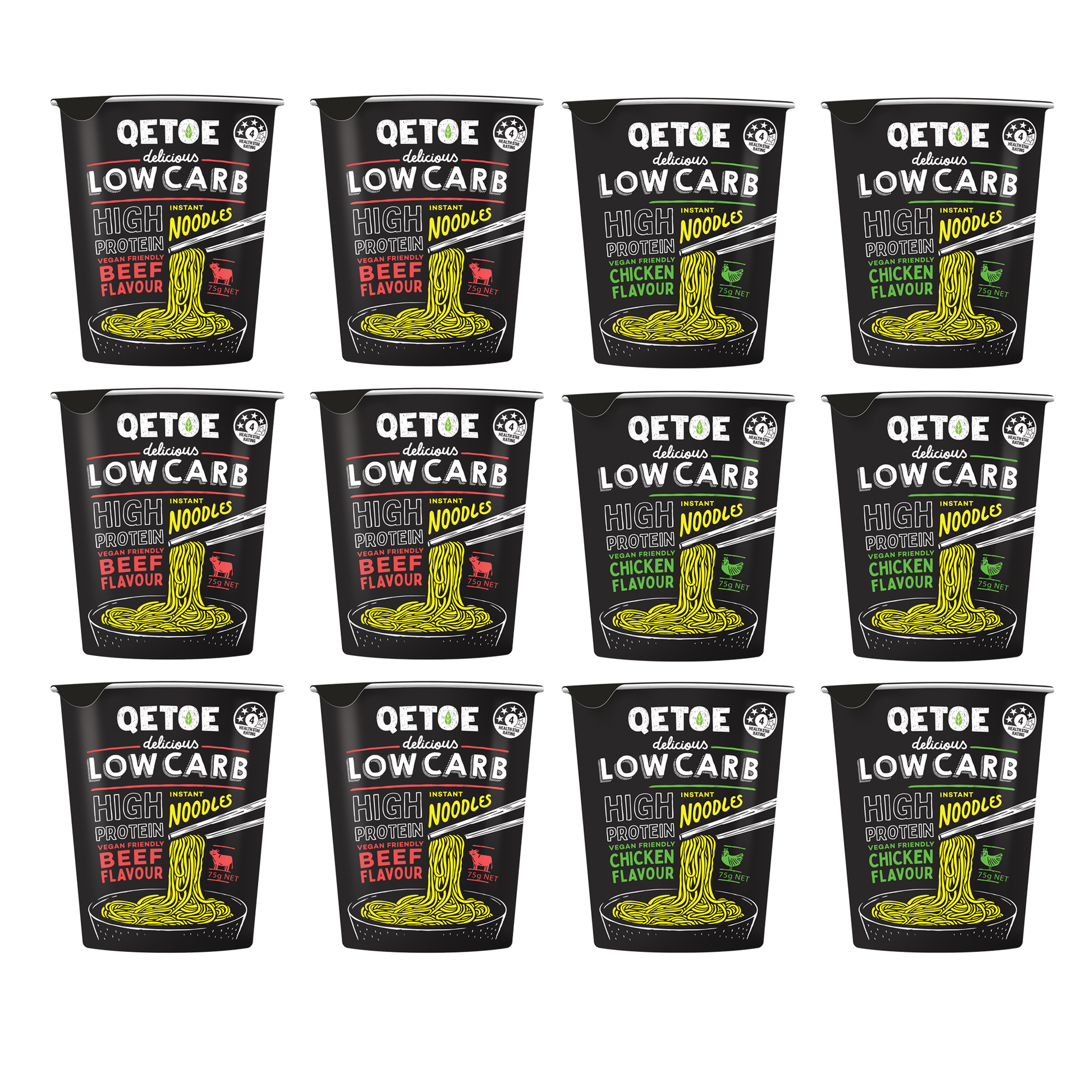 Qetoe Low Carb High Protein Instant Cup Noodle - COMBO 12 PACK